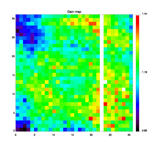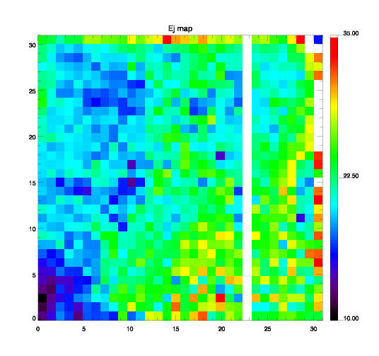 En conclusion, la carte du Gain Factor étant relativement uniforme avec une faible dispersion, la qualité du bulk est bonne. Par contre, la carte Ej décrivant la qualité des contacts est nettement moins bonne: il est supposé que ce paramètre n'a pas été pris en consideration lors de la fabrication de LW CAM et des test associes, en phase technologique.